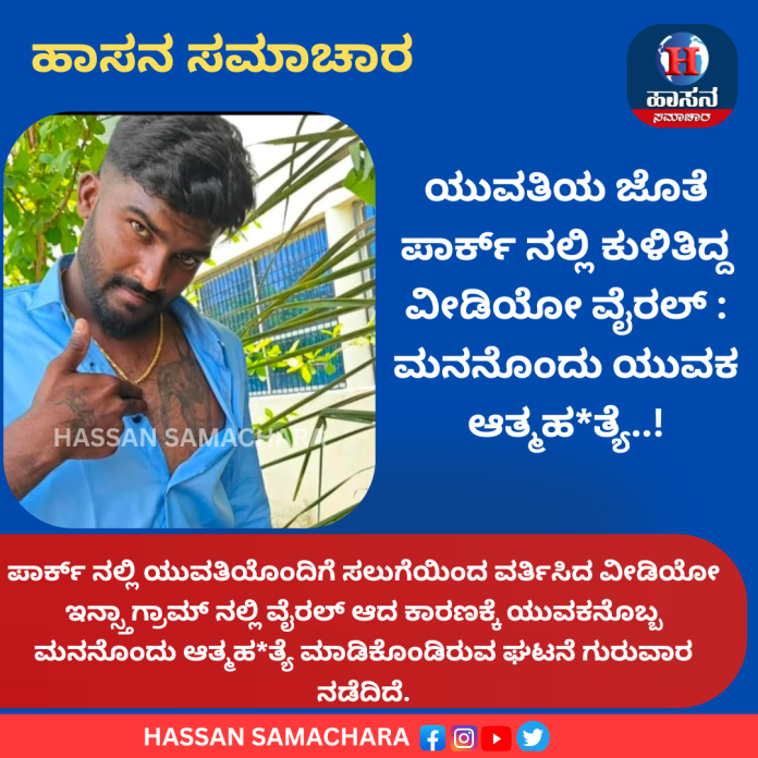 ಪಾರ್ಕ್ ನಲ್ಲಿ ಯುವತಿಯೊಂದಿಗೆ ಸಲುಗೆಯಿಂದ ವರ್ತಿಸಿದ ವೀಡಿಯೋ ಇನ್ಸ್ತಾಗ್ರಾಮ್ ನಲ್ಲಿ ವೈರಲ್ ಆದ ಕಾರಣಕ್ಕೆ ಯುವಕನೊಬ್ಬ ಮನನೊಂದು ಆತ್ಮಹತ್ಯೆ ಮಾಡಿಕೊಂಡಿರುವ ಘಟನೆ ಗುರುವಾರ ನಡೆದಿದೆ.